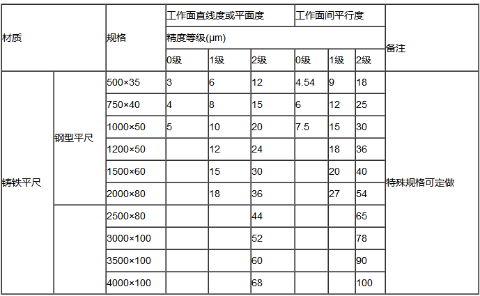 是按JB/T7977-99標(biāo)準(zhǔn)制造,采用HT250灰鐵鑄造,工作面采用刮研或精密磨削工藝,是用來測(cè)量工件的直線度和平面度及設(shè)備的安裝主,使用溫度(20±5)℃。使用過程中要注意平行